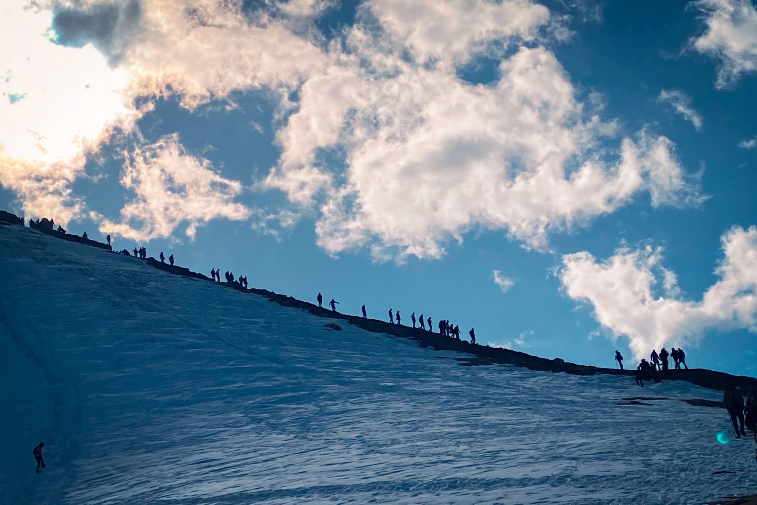 Day 4 marks the start of the steep climb in the path fully engulfed by snow for reaching the majestic summit of Kedarkantha at the height of 12,500 ft. Starting as early as 2 AM is recommended as the trek itself will require 7-8 hours. You’ll witness the holy mountains of Yamunotri, Gangotri and Kailash Kinnerrange.